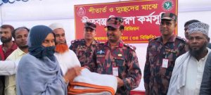 বৃহস্পতিবার (৮জানুয়ারী) বিকেল ৪টার দিকে বাইশফাঁড়ী সরকারি প্রাঃবিঃ’র মাঠে বিজিবি’র কক্সবাজার রিজিয়ন ও কক্সবাজার ব্যাটালিয়নের উদ্যোগে সীমান্ত লাগোয়া বাইশফাঁড়ী এলাকার প্রায় ৩শত পরিবারের মাঝে কম্বল বিতরণ করেন।