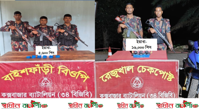 উখিয়ায় ৩৪ বিজিবির পৃথক অভিযানে ২১ হাজার ইয়াবা ও মোটরসাইকেল জব্দ