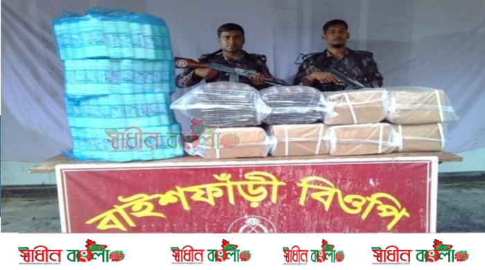 চোরাচালান রোধে ৩৪ বিজিবির অভিযান বাইশফাঁড়ী সীমান্তে চোরাই মালামাল জব্দ