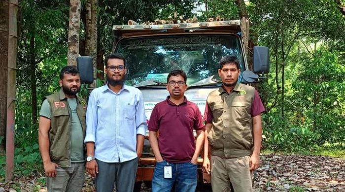 ইট ভাটায় পাচার কালে লাকড়িভর্তি ডাম্পার গাড়ি আটক করলো বনবিভাগ