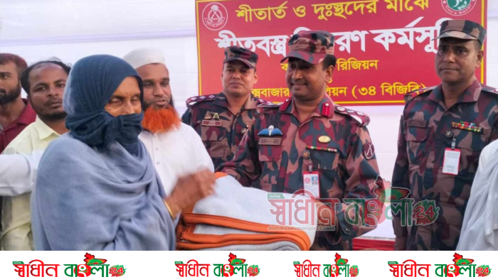 ঘুমধুমে শীতার্ত ৩শত পরিবারের মাঝে বিজিবির কম্বল বিতরণ